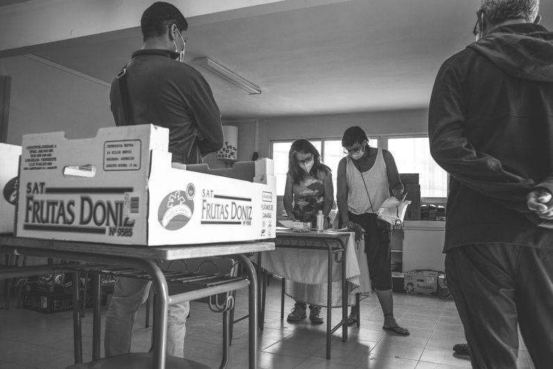 Algunos días ponen una mesa en la puerta de los supermercados para recoger alimentos allí.